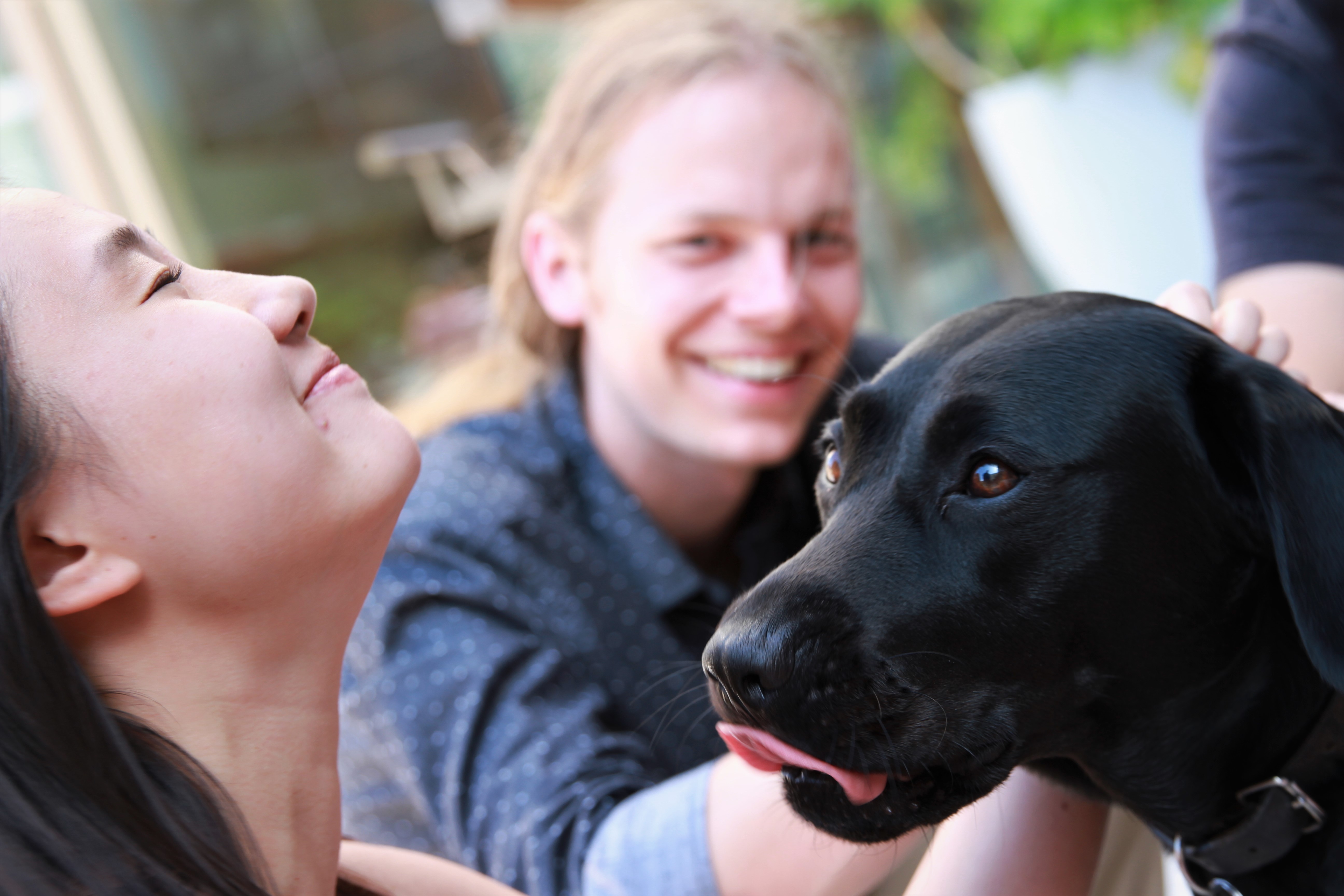 Exeter College Summer Programme Students with a Black Labrador