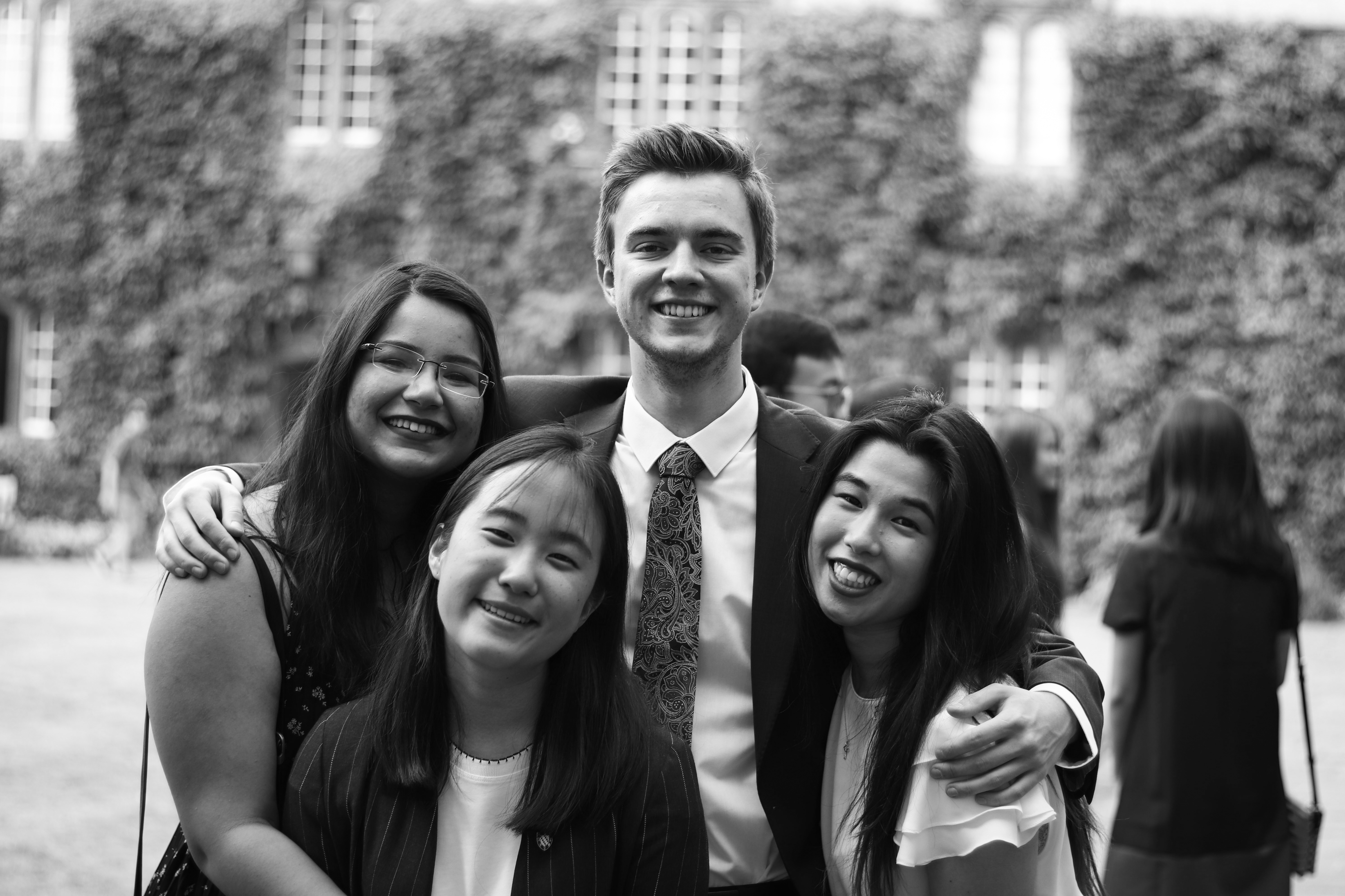 students at a formal in Front Quad smiling